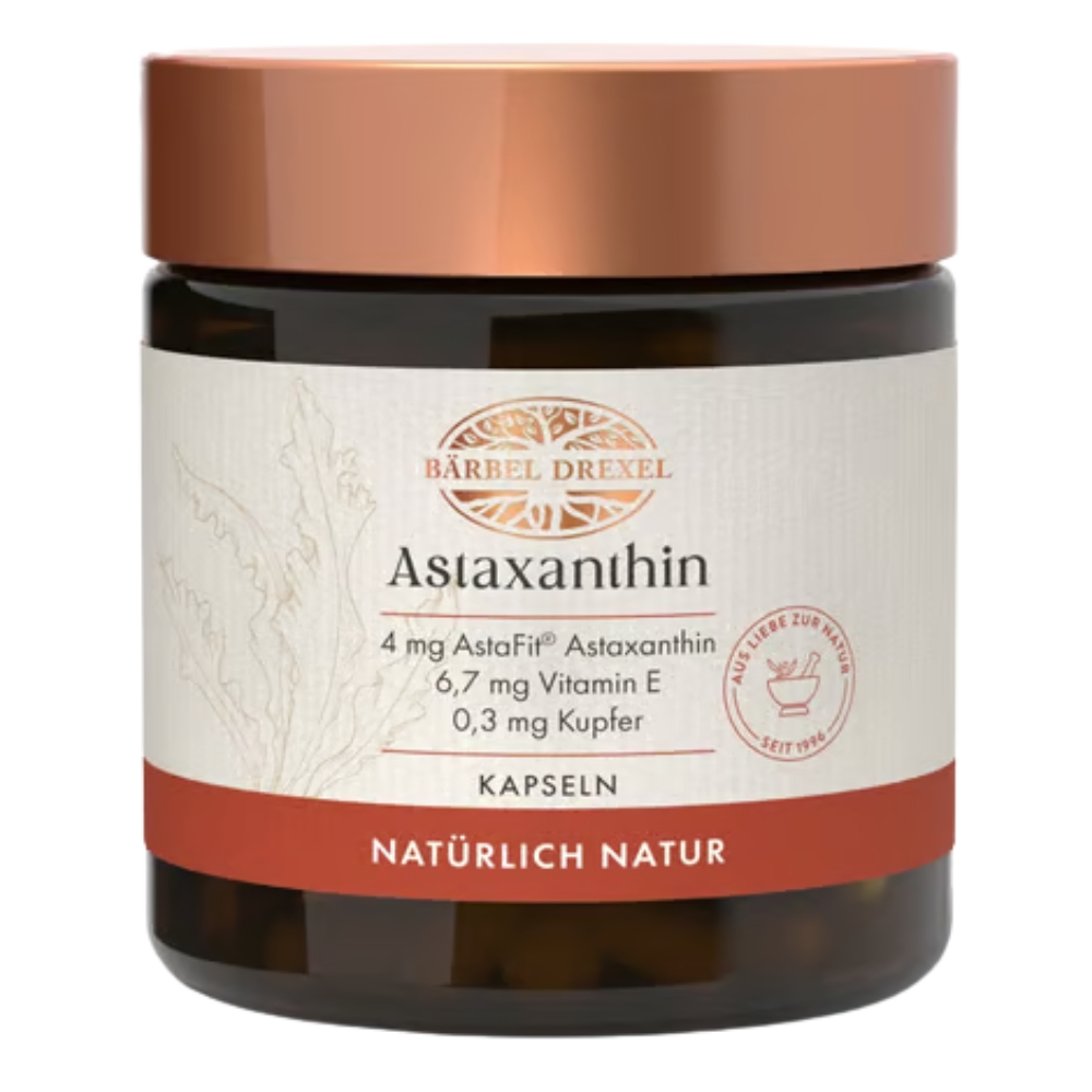 Die Astaxanthin-Kapseln von Bärbel Drexel enthalten einen wirkungsvollen Antioxidantien-Komplex aus natürlichem Astaxanthin, Vitamin E und Kupfer, der einen umfassenden Zellschutz bietet. Die AstaFit®-Formel aus Österreich steht für hochwertige Rohstoffqualität und der Zusatz von Distelöl zeigt, dass auf eine Optimierung der Bioverfügbarkeit geachtet wurde.