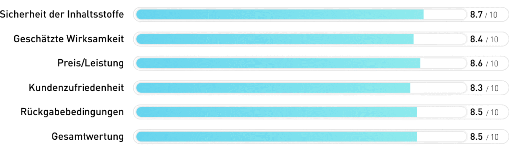 Die niedrigere Astaxanthin-Dosierung von 4 mg und das Fehlen ergänzender Pflanzenstoffe wie Guarana und Hibiskus bedeuten jedoch, dass dieses Produkt eine weniger umfassende Unterstützung bietet als unser Testsieger. Trotz der durchweg positiven Kundenbewertungen und der hohen deutschen Fertigungsqualität, wie sie auch beim Siegerprodukt zu finden ist, bietet die Forte-Variante aufgrund ihres höheren Astaxanthingehaltes und der zusätzlichen pflanzlichen Energie-Booster die bessere Wahl für alle, die maximale Wirkung suchen.