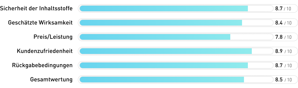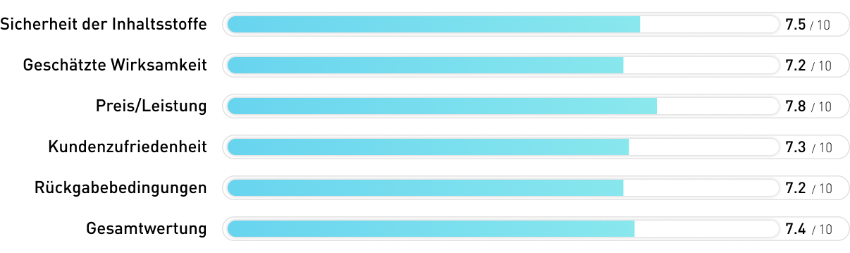ZenRylax ist ein ausgewogenes, sauber formuliertes Nahrungsergänzungsmittel mit guten Kundenbewertungen und einer zuverlässigen 100-Tage-Garantie. Die Herstellung in der EU und das allergenfreie Profil sind echte Pluspunkte. Allerdings liegen die Ashwagandha-Dosis und die Standardisierung deutlich hinter dem Produkt auf Platz 1 zurück, und das Fehlen eines patentierten, klinisch validierten Extrakts schränkt evidenzbasierte Wirksamkeit ein. Eine solide zweite Wahl für diejenigen, die eine breite Formel mit mehreren Inhaltsstoffen wünschen.